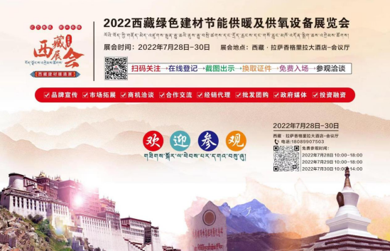 作为进藏展的重要组成部分:2022年中国(西藏)绿色建材·节能暖通及供氧制氧产品展览会即将于2022年7月28-30日在拉萨香格里拉酒店~会议厅隆重举办!