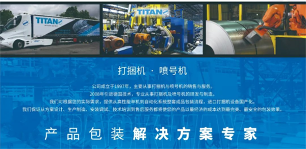 2005年,代理德国TITAN打捆设备,应用于钢铁,建材,电子等行业,先后与鞍钢,首钢等国内知名企业合作。